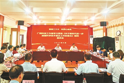 為貫徹落實(shí)《意見》精神,9月9日自治區(qū)科協(xié)舉辦了以“喜迎二十大 科界心向黨”為主題的廣西科技工作者學(xué)習(xí)貫徹《意見》精神座談會(huì)。中國工程院院士,廣西大學(xué)土木建筑工程學(xué)院教授鄭皆連出席會(huì)議并講話,中國工程院院士,廣西大學(xué)教授、博士生導(dǎo)師王雙飛為這次座談會(huì)作了書面發(fā)言,自治區(qū)科協(xié)黨組書記、副主席納翔主持會(huì)議,來自全區(qū)理、工、農(nóng)、醫(yī)、綜合學(xué)科等領(lǐng)域的優(yōu)秀科技工作者代表參會(huì)座談交流。