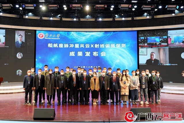12月22日上午,廣西大學召開成果發布會,介紹天文與空間科學技術團隊取得的深空探索觀測研究重大成果,該成果的重要部分《船帆座脈沖星風云X射線偏振趨近同步輻射理論極限》已于當日在國際頂級期刊《自然》雜志發表。國內外知名領域專家、自治區相關廳局領導、10多家媒體和校內師生代表參加了本次發布會。