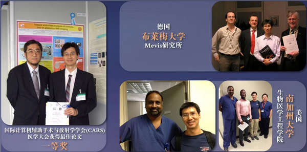 2006年,2010年和2014年,張學(xué)軍還分別受德國布萊梅大學(xué)Mevis研究所,日本岐阜大學(xué)醫(yī)學(xué)研究科和美國南加州大學(xué)生物醫(yī)學(xué)工程學(xué)院的邀請(qǐng),先后以訪問教授、訪問學(xué)者的身份合作開展相關(guān)研究。