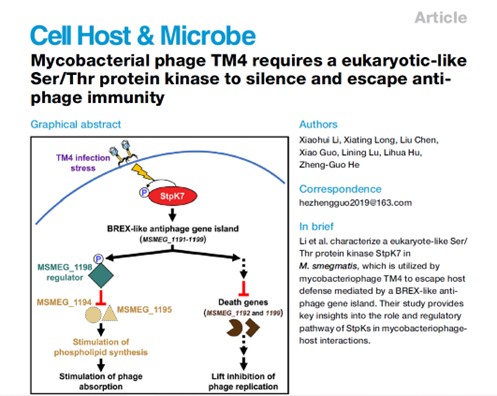 近日,《Cell》子刊《Cell Host & Microbe》在線發(fā)表了廣西大學(xué)生命科學(xué)與技術(shù)學(xué)院、亞熱帶農(nóng)業(yè)生物資源保護與利用國家重點實驗室何正國教授領(lǐng)銜的合成生物學(xué)團隊在細菌病毒感染及宿主防御機制研究方面的最新成果,揭示了噬菌體-分枝桿菌之間獨特的防御與反防御相互作用新機制,也為未來利用噬菌體防治相關(guān)感染性疾病提供了重要線索和新思路。