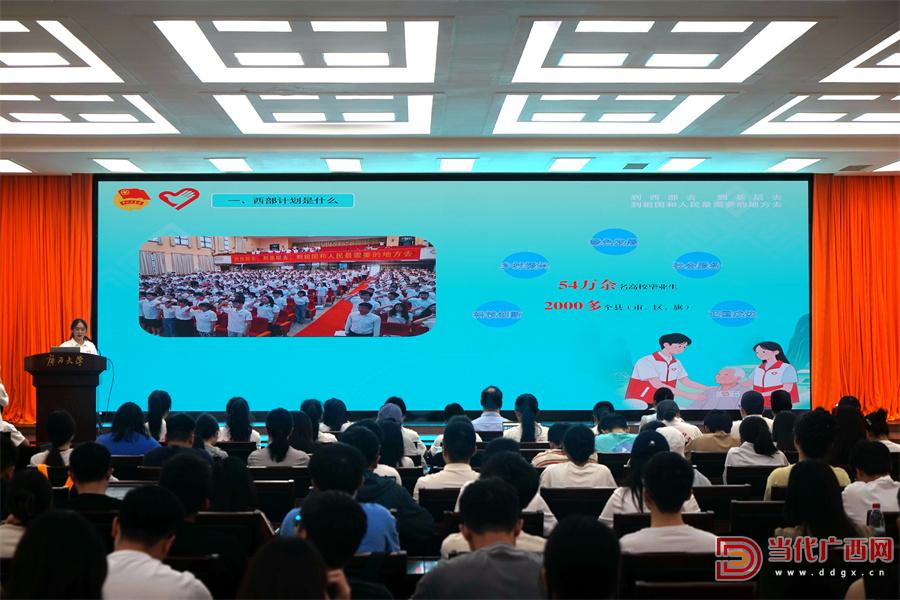 4月21日上午,2025年廣西大學(xué)生志愿服務(wù)西部計(jì)劃首場招募宣講會(huì)在廣西大學(xué)舉辦,4名西部計(jì)劃志愿者向現(xiàn)場大學(xué)生分享服務(wù)經(jīng)歷和成長感悟,號(hào)召廣大青年學(xué)子加入西部計(jì)劃,以實(shí)際行動(dòng)報(bào)效祖國、建功西部。