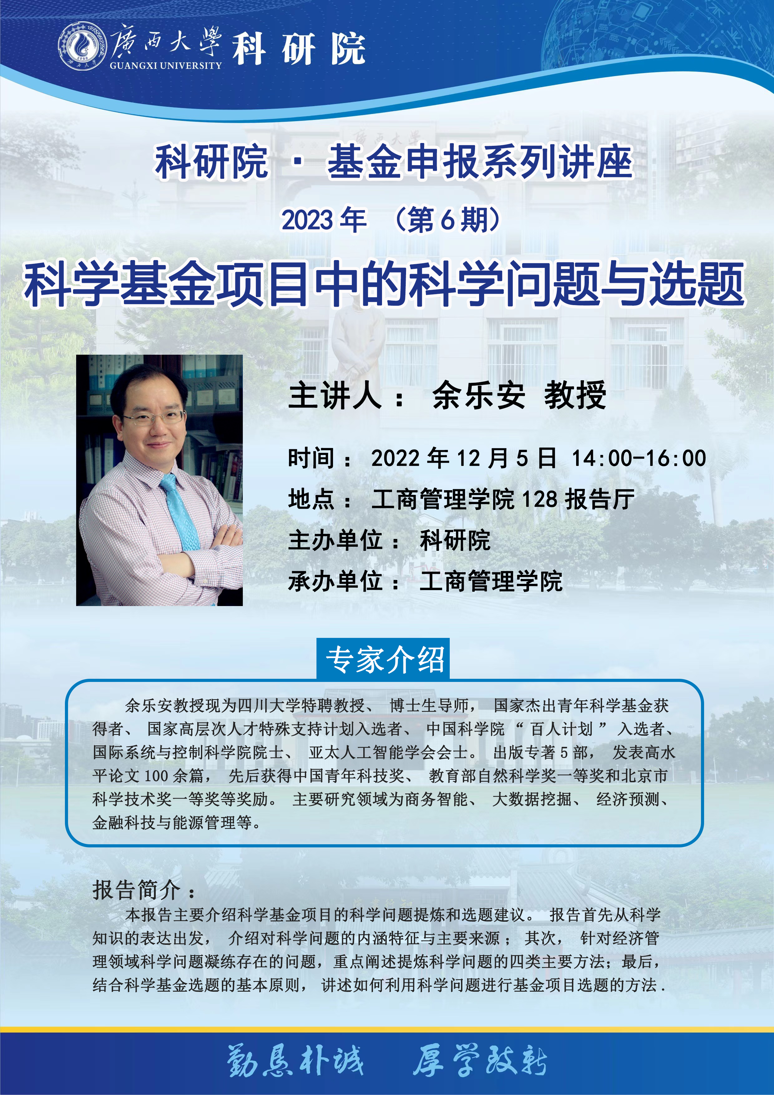 下一條:科研院·基金申報(bào)系列講座2023年(第5期)國家自然科學(xué)基金申報(bào)的寫作技巧與體會(huì)